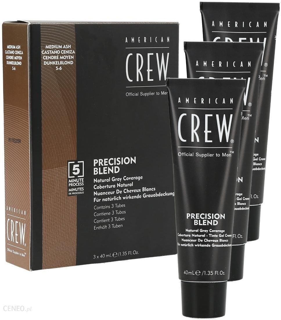 Precision Blend Medium Ash – skuteczny odsiwiacz dla męskich włosów Świetny produkt do pokrycia siwizny. Przywróci naturalny kolor Twoim włosom, przykrywając odpowiednią warstwą te, które już go utraciły. Nie niszczy włosia i nie obciąża go swoim składem. Koloryzacja będzie utrzymywać się nawet do 24 myć. Korzystając z tego kosmetyku do włosów będziesz mógł cieszyć się swoim ulubionym kolorem, tym, który towarzyszył Ci przez całe życie. Najważniejsze cechy odsiwiacza Medium Ash: Ethanolamina zamiast amoniaku pH na poziomie 9.5-10 Brak miedzianych i czerwonych pigmentów Efekty widoczne po 5 minutach od zaaplikowania produktu Cieszy kolorem do 24 myć z użyciem szamponu Niepermanentna koloryzacja włosów Producent: American Crew Pojemność 3x40ml Sposób stosowania: Nim nałożysz produkt, umyj włosy szamponem. Wymieszaj odsiwiacz z oksydantem w proporcjach 1:1. Preparat rozprowadź równomiernie po włosach i pozostaw na około 5 minut. Dokładnie spłucz resztki z głowy i wymyj ją ponownie szamponem. Wybierz kolor najbliższy Twojemu naturalnemu. 20ml mieszkanki będzie wystarczające na pokrycie włosów o długości 1cm. Ciesz się naturalnym kolorem włosów aż do 24 myć. Składniki/Ingredients: Aqua (Water (Eau)), Propylene Glycol, Laureth-2, Ethanolamine, Isostearic Acid, Glyceryl Stearate SE, Stearyl Alcohol, Steartrimonium Chloride, Polyquaternium-28, Polyquaternium-10, Cocamidopropyl Betaine, Ammonium Lauryl Sulfate, Panthenol, Panax Ginseng Root Extract, PEG-150/Decyl Alcohol/SMDI Copolymer, Parfum (Fragrance), Erythorbic Acid, Sodium Sulfite, Tetrasodium EDTA, p-Phenylenediamine, Resorcinol, m-Aminophenol, p-Aminophenol, 2-Amino-4- Hydroxyethylaminoanisole Sulfate, 2,4-Diaminophenoxyethanol HCI.